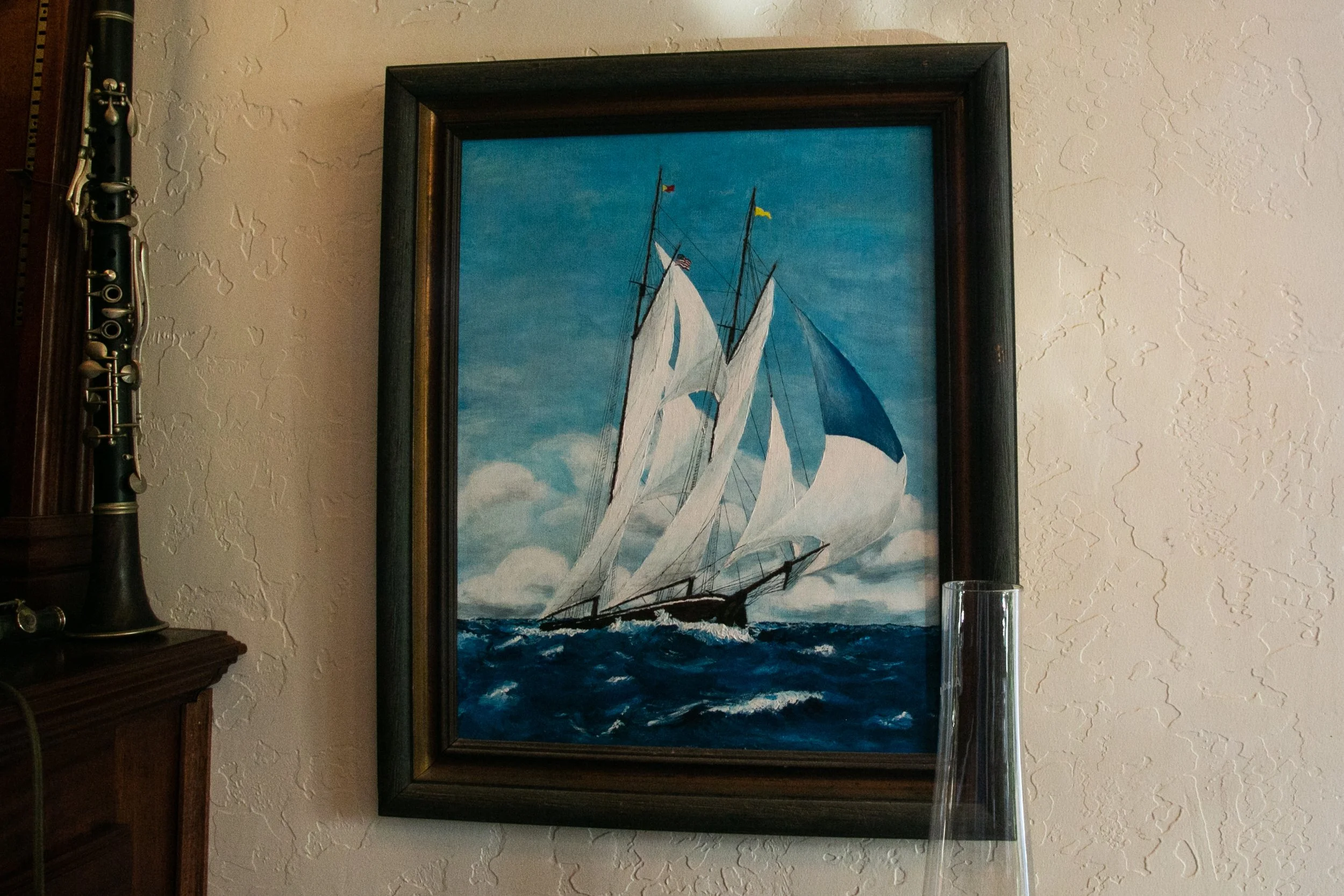 I was still a kid when I first came to appreciate Dad not just as a sailor, but as a maker. I studied things he had made when he wasn't much older than I was when I noticed them—wooden boat models built from scratch, and even a couple oil paintings that absorbed some of his high-seas obsessions as a teenager. He never painted again, though. He committed to wood and music.
