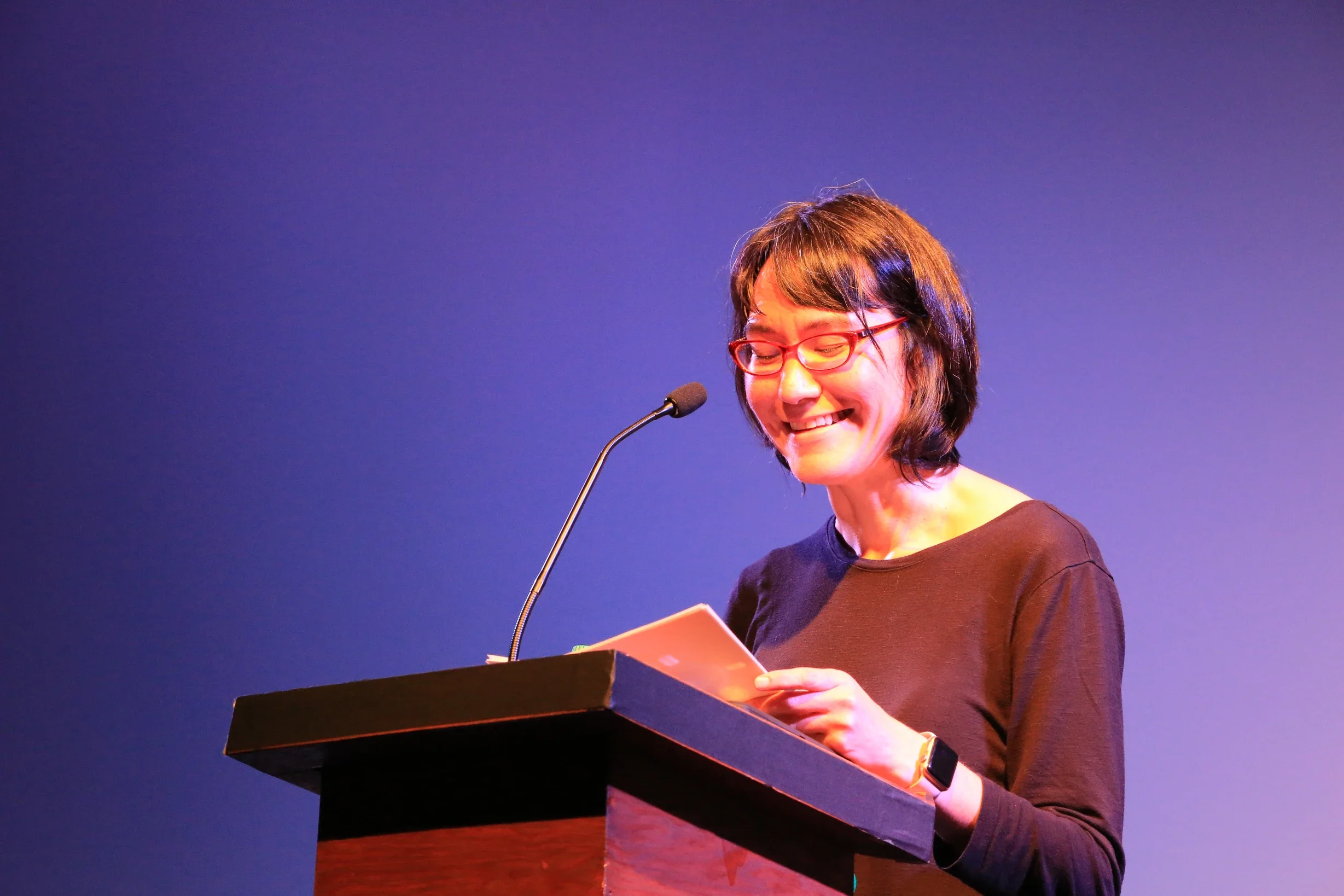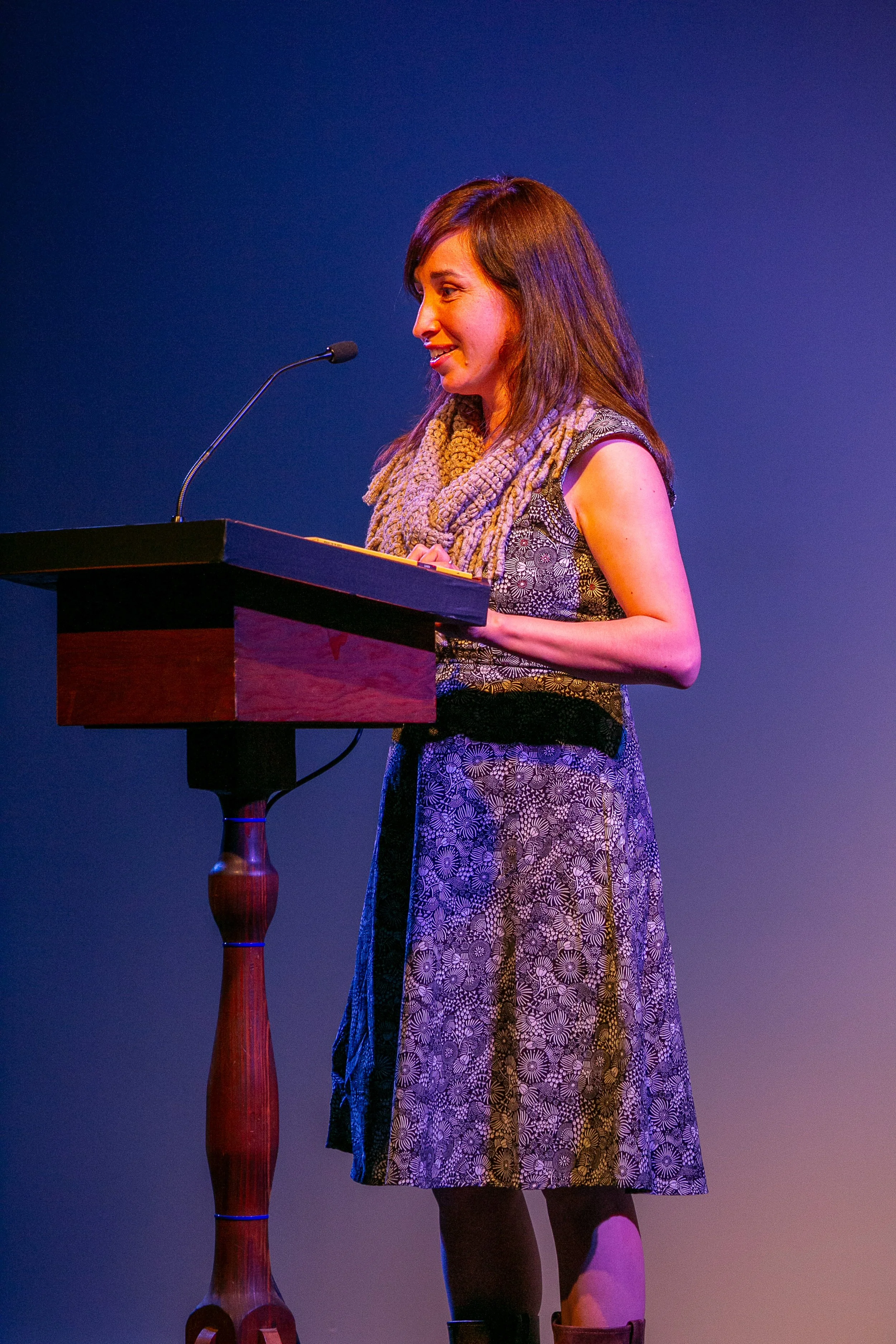 Kristiana Kahakauwila delivered a flawless reading from the title story in her first book, This is Paradise (Hogarth, 2013), grounded in the people and landscapes of contemporary Hawai'i. Kristiana is a hapa writer of kanaka maoli (Native Hawaiian), German, and Norwegian extract. She is an associate professor of creative writing at Western Washington University (my undergrad alma mater) and serves as faculty in The Institute of American Indian Arts Low Residency MFA in Creative Writing. Her story, set in Waikiki, was written in the “we” voice, a serially-voiced first person plural comprised of three groups of women—surfer girls, housekeeping women in the hotels, and career women. It seemed apt for an evening so hinged on a sense of a community of women, and probably was especially so given that she apparently drafted the story in residence nearby at Hedgebrook, surrounded by creative women.